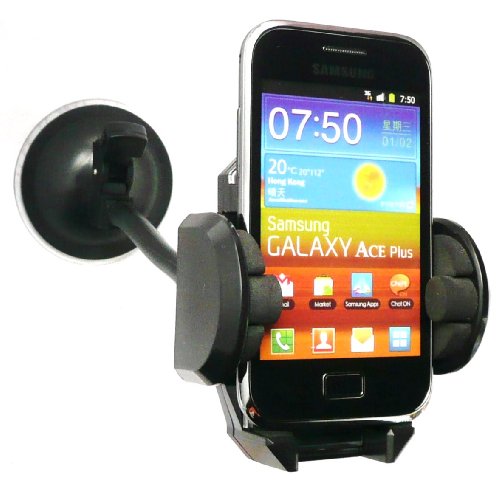 - Emartbuy 7 pollici Car Holder Universale per parabrezza ventosa nero adatto per Samsung S7500 Galaxy Ace Plus - Include un caricabatteria da auto compatibile Micro Usb