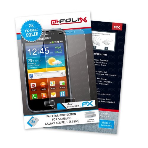 - Sagomata su misura per il display dell' Samsung Galaxy Ace Plus (S7500) . Alta qualità di lavorazione garantita grazie all'utilizzo dei piú moderni macchinari di precisione (tecnica di taglio laser) - Made in Germany!