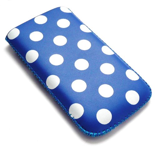 - Emartbuy Value Pack per Samsung S7500 Galaxy Ace Plus Polka Dots Blue / White PU Custodia in pelle / Custodia / Manica / Titolare (X-Large) con meccanismo tirare la linguetta + compatibile Micro USB caricabatteria da auto + Proteggi Schermo LCD